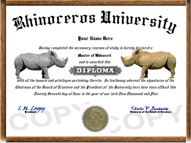Item # 00067 - Rhinoceros Diploma