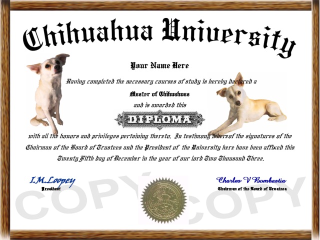 collectible dog diplomas!