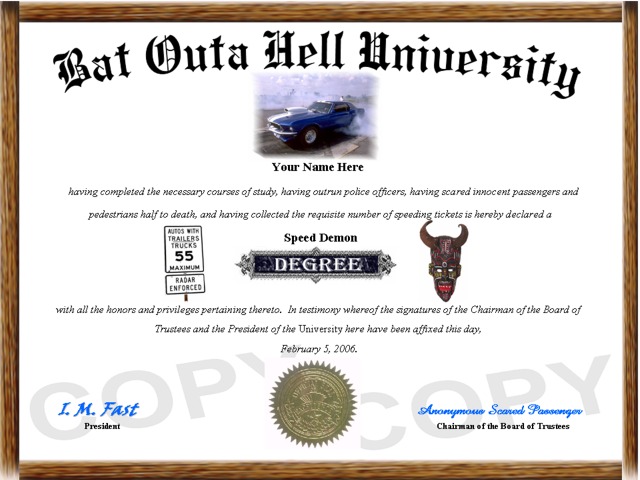 your humorous custom novelty diploma.