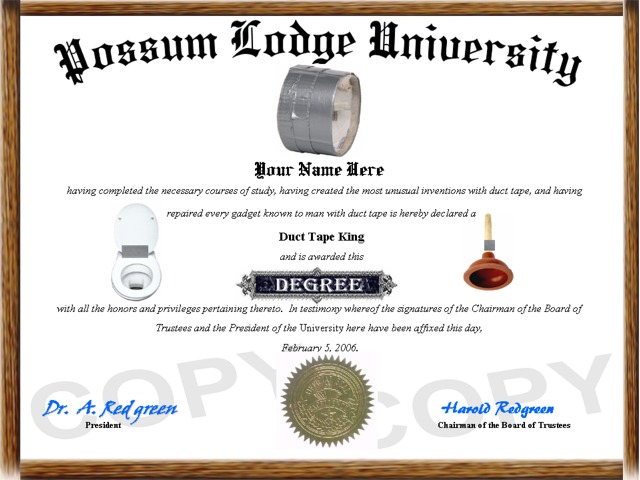 Item # 00595 - Duct Tape King Diploma