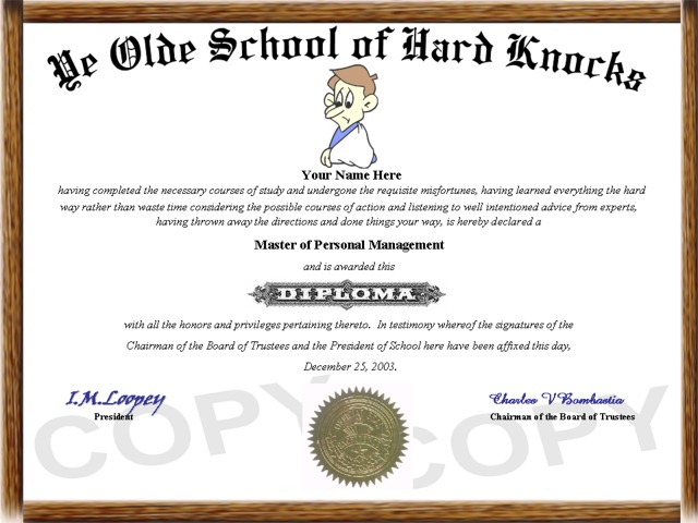 Item # 00460 - Hard Knocks Diploma