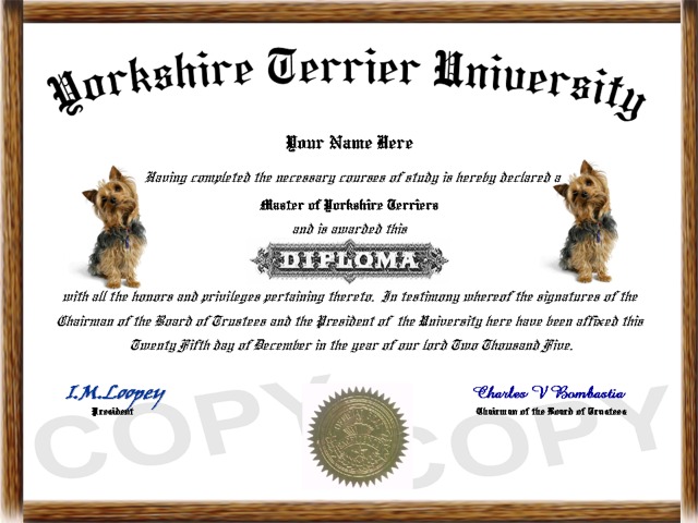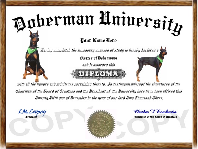 collectible dog diplomas!